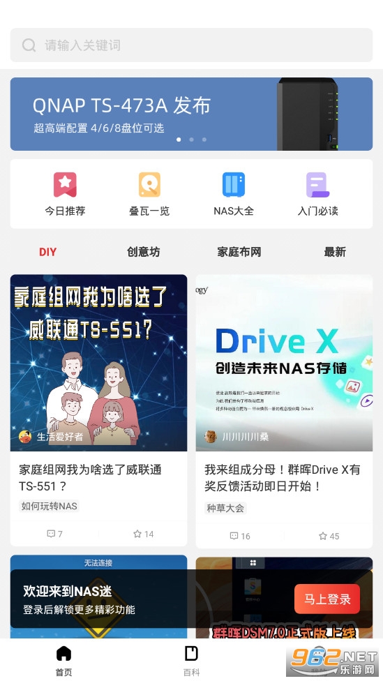 2.NAS迷app每天都会为用户推荐各种的实时工具消息,还有创意坊、家庭布网等等的功能可以为用户提供使用,用户可以在线的进行自由选择。