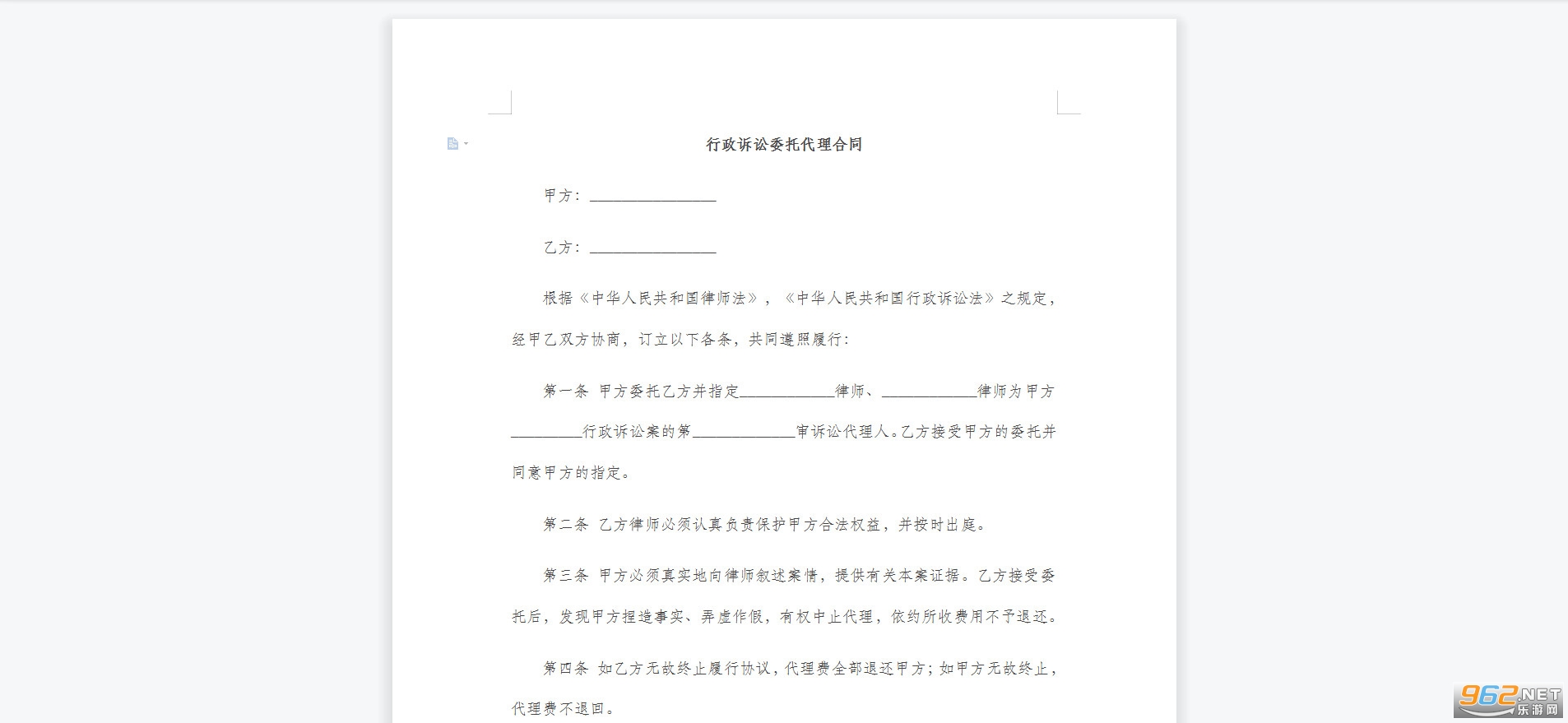 第三条 甲方必须真实地向律师叙述案情,提供有关本案证据。乙方接受委托后,发现甲方捏造事实、弄虚作假,有权中止代理,依约所收费用不予退还。