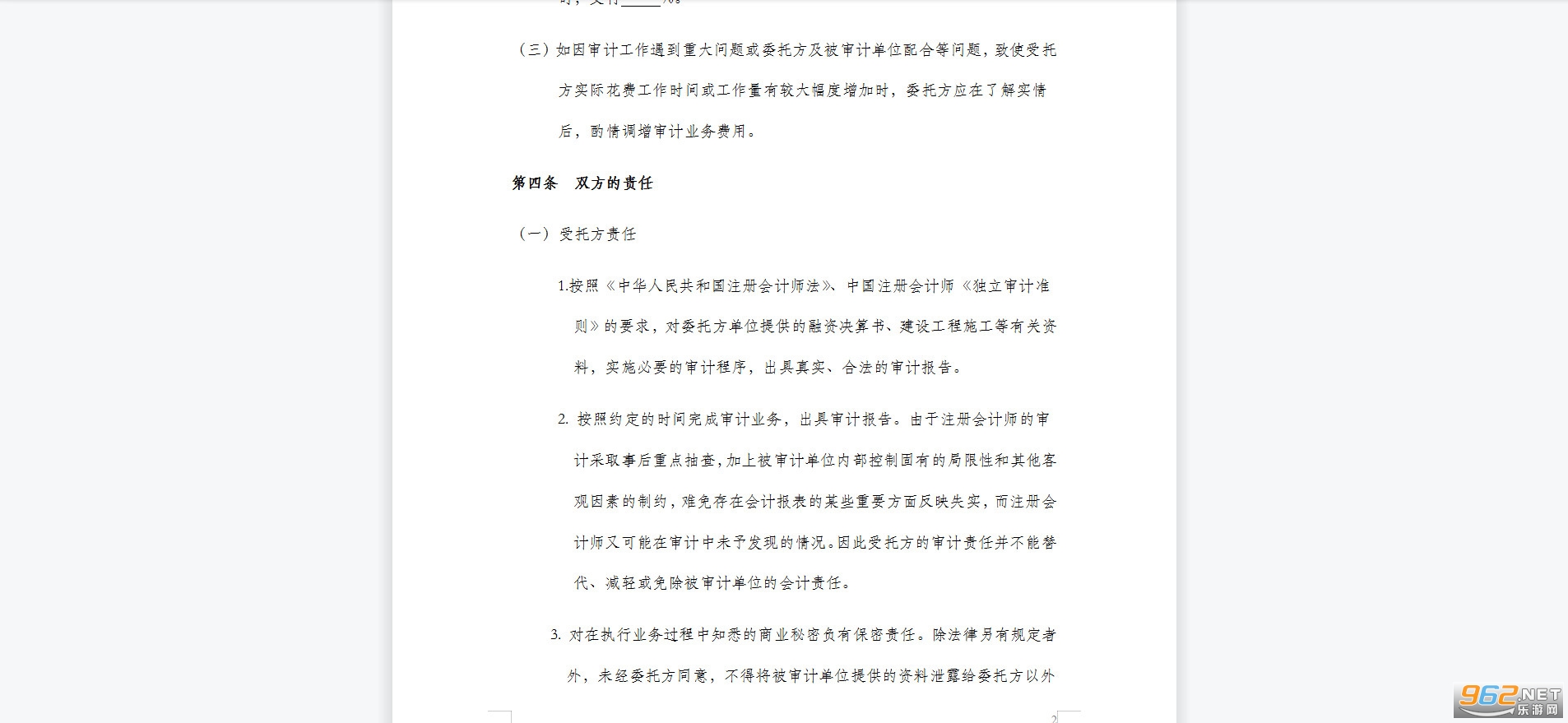 4.委托方应正确使用审计报告,由于使用不当所造成的后果,与受托方无关。