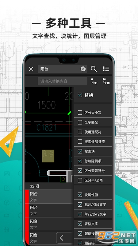 能够在移动端完成查询CAD照片,不但具备云端备份的作用,还可以轻轻松松完成CAD工程图纸绘图和改动,适用AutoCAD、浩辰CAD、天正建筑等世界各国CAD工程图纸的显示信息,兼容各版本号DWG文档