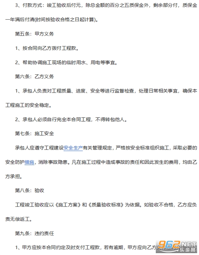 6、由于乙方施工管理不善,造成任何第三方的损害,由乙方承担一切责任。