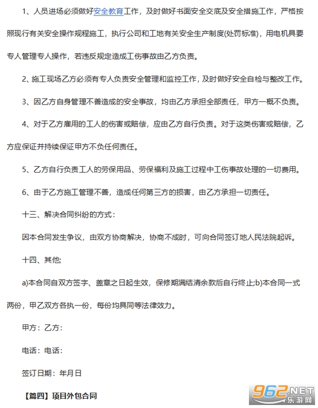 3、因乙方自身管理不善造成的安全事故,均由乙方承担全部责任,甲方一概不负责。