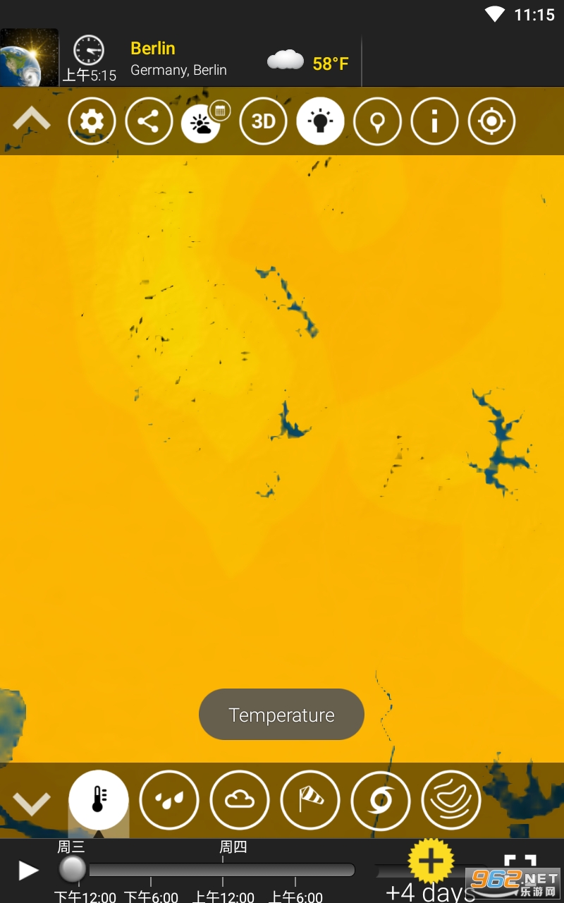 MeteoEarth是一款专业的天气软件,程序采用3d旋转地球设计,对天气、压力、降水、温度、锋利、运量都能做全方位的展示。