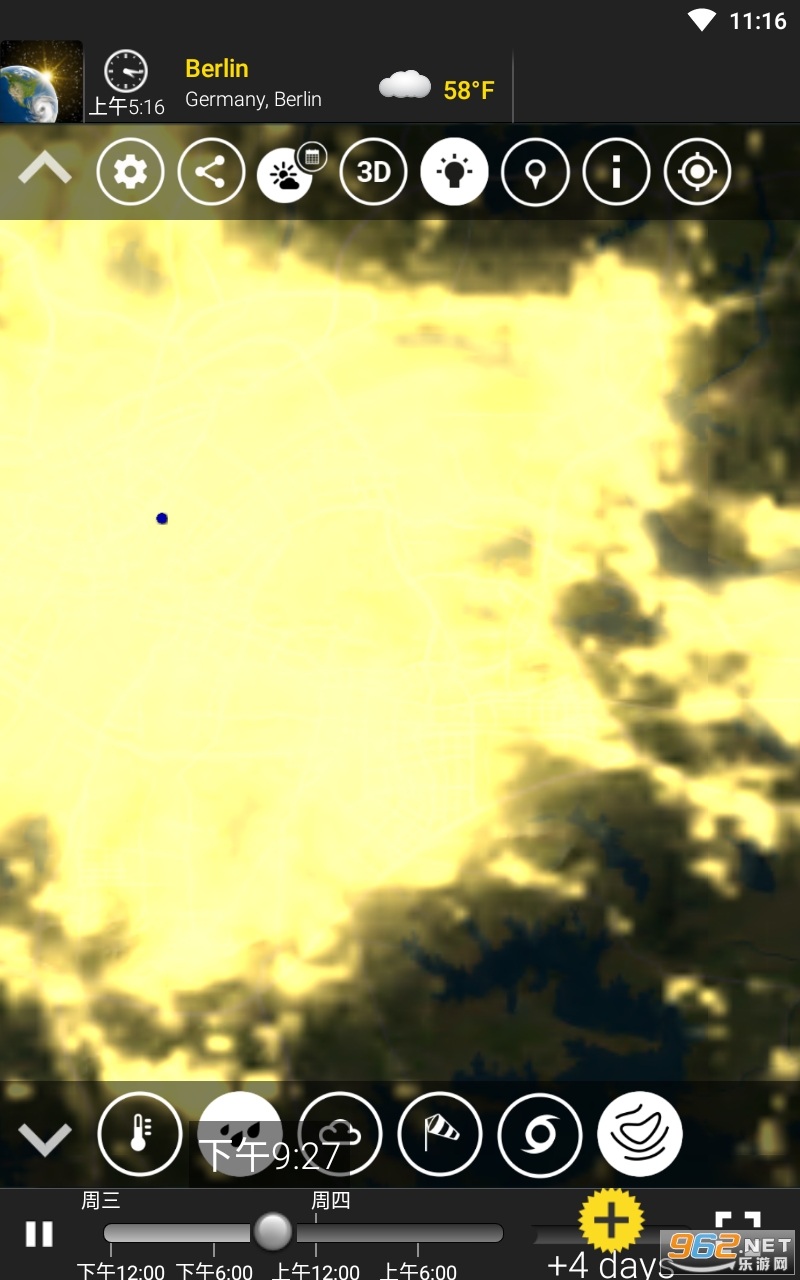 9.卫星云图:观察北美,中美洲,欧洲,非洲和印度的云层覆盖,并为特定地区提供闪电更新。