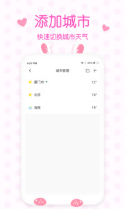 支持全国多个城市及地区天气查询,采用逐小时天气预报实时监测阴晴雨雪及空气质量,雾霾天不出门。