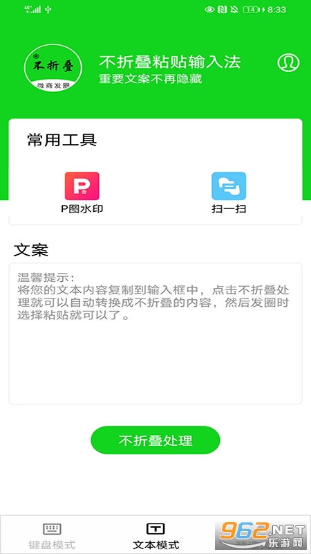 《不折叠粘贴输入法最新版本》是一款全新的朋友圈小众输入法工具。当你在朋友圈或者其他的app中出现所发送的文字折叠成一小段的时候,就可以使用不折叠粘贴输入法,直接可以全文展示,避免影响阅读,操作比较的方便,使用简单,需要的朋友就来下载吧!