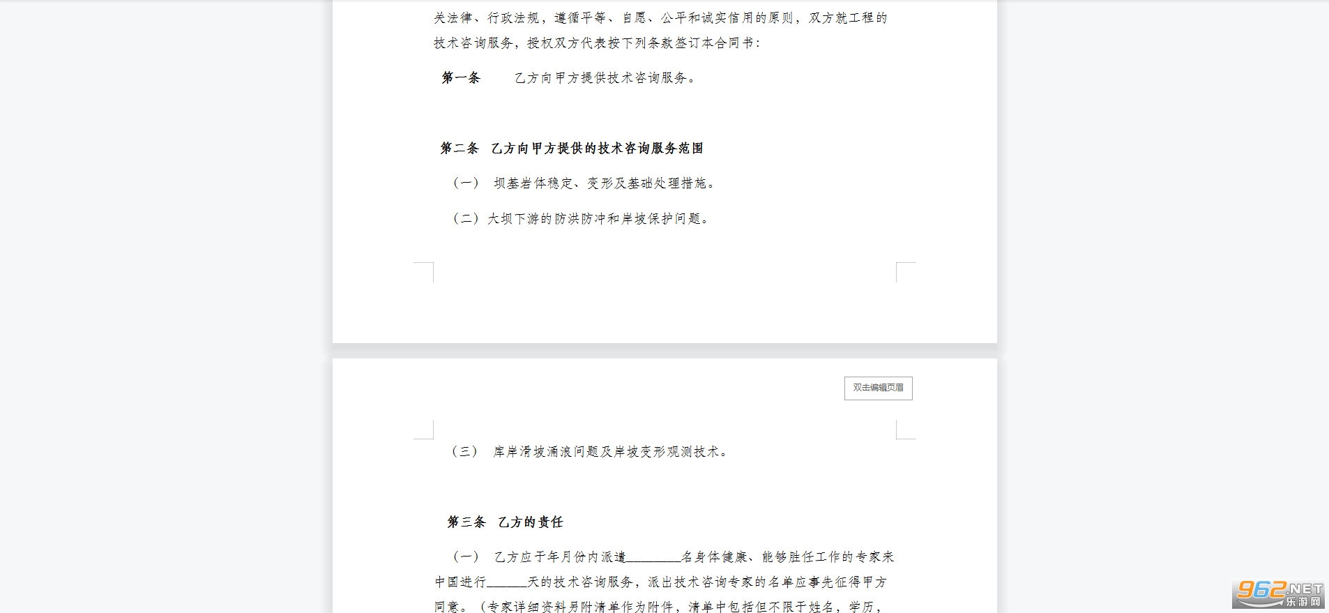 第一条乙方向甲方提供技术咨询服务。