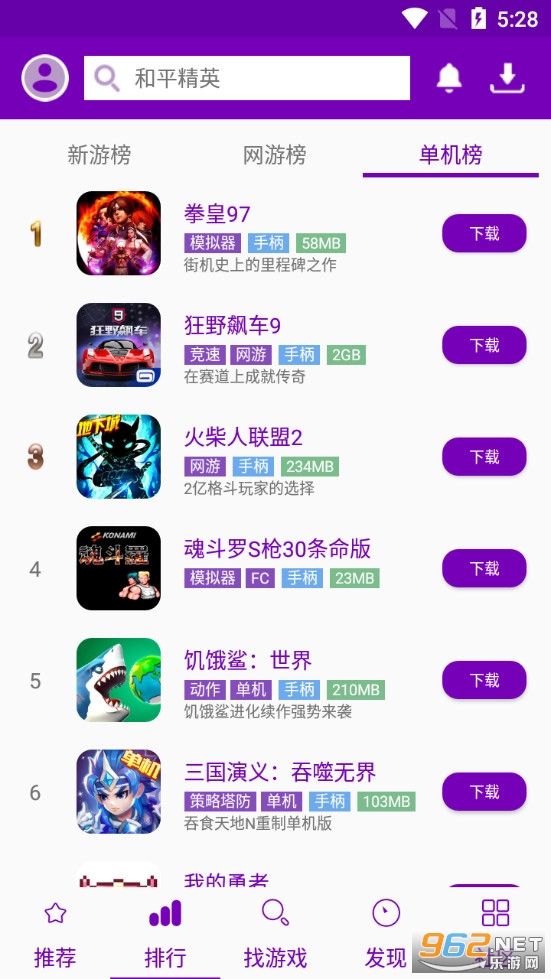 动作格斗:街霸4、刀魂、全民泡泡堂、果宝三国。