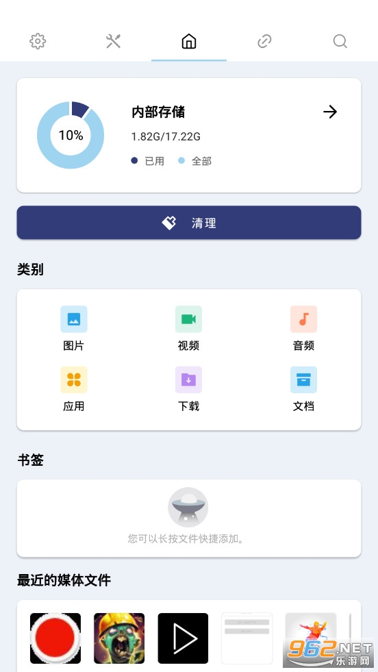 2.在PoMelo File Explorer文件管理app中,用户可以选择不同的模式清理,包括图片、视频、音频、应有、下载、文档等等,用户可以自行的进行选择然后清理。