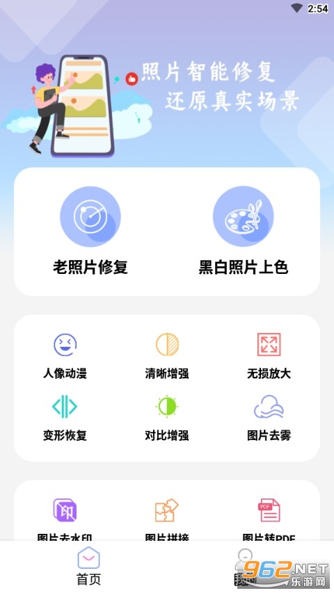 帮助用户轻松修复受损图片照片,强大的修复功能,所有的功能都是能直接免费使用的,还有像图片去除水印,图片拼接、上色、去折痕都能轻松搞定,几秒钟的功夫轻松为你修复照片。