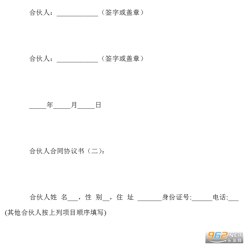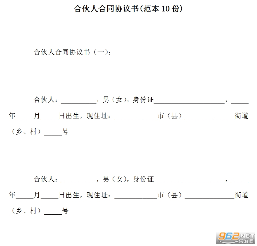 合伙人:__________,男(女),身份证____________________,_____年_____月_____日出生,现住址:____________市(县)______________街道(乡、村)_____号