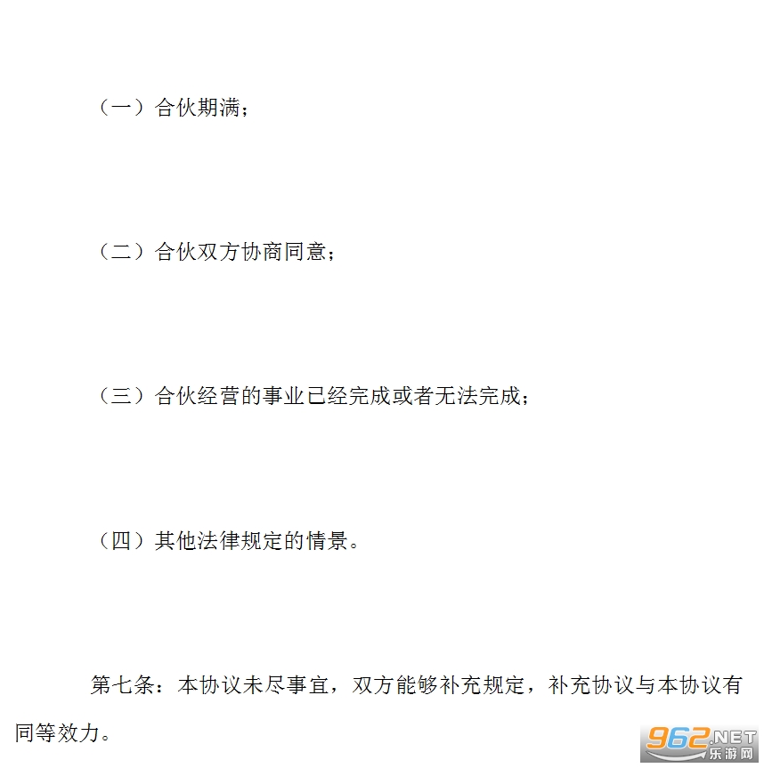 4、撤资的条件和处理办法。比如当合伙人离开公司时,或者合作公司解体时,每个合伙人的资本份额如何估价,如何处理等问题。