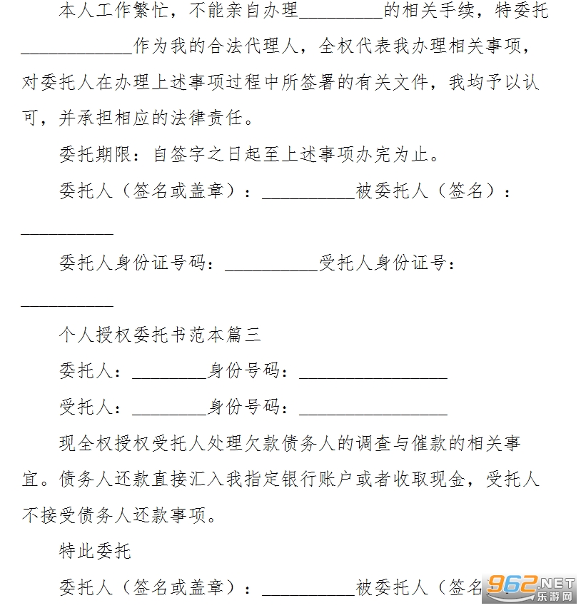《个人授权委托书范本大全》是小编收集到的关于个人授权委托书的范本内容,一共有两篇都是比较正规的,有需要的亲们可以看看,里面的有些内容也是可以进行修改的,感兴趣的亲们赶紧下载吧。