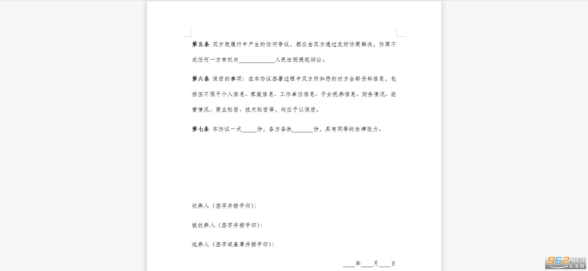 第七条 本协议一式 份,各方各执 份,具有同等的法律效力。