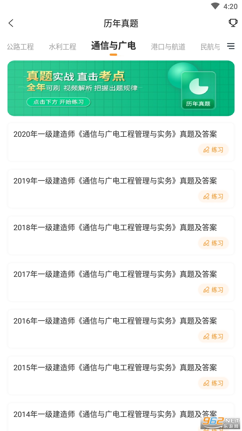 《一建通信与广电历年真题app》是一款帮助大家考一建的软件,大家可以通过这款《一建准题库app》开启练题。为大家准备了历年的考试真题及答案。让大家开启模拟考试,同时还有2026考试试卷模拟,让大家刷题成功考过一建!
