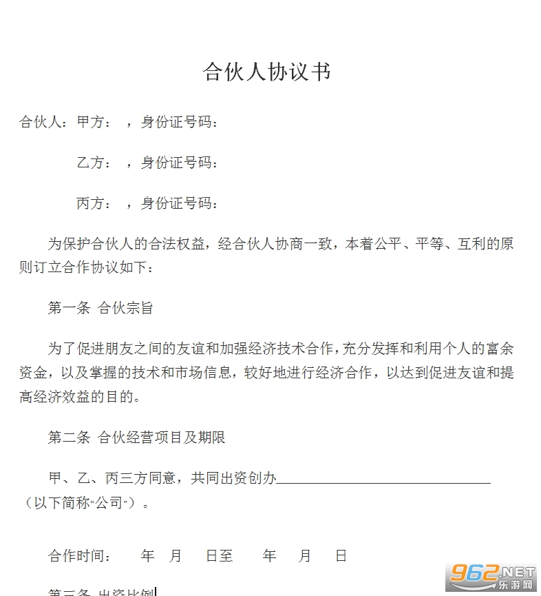 为保护合伙人的合法权益,经合伙人协商一致,本着公平、平等、互利的原则订立合作协议如下:
