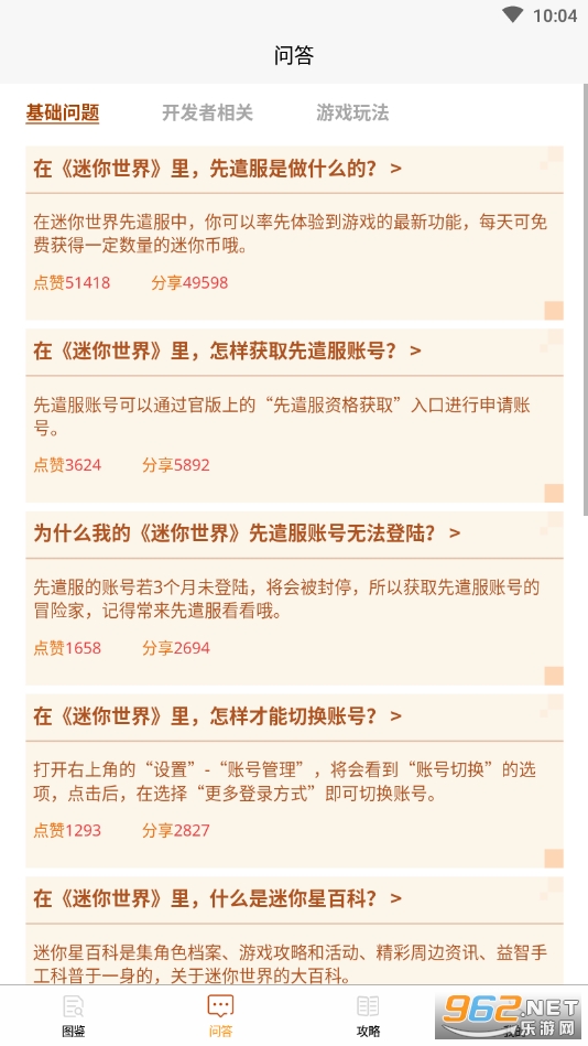 2、问答:包含基础问题,游戏玩法等诸多新手疑惑问题解答。