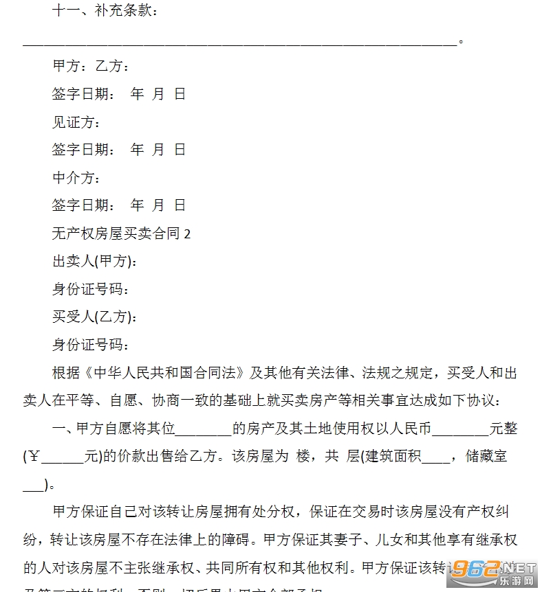 十、本协议自甲、乙双方签字后生效,已经签字任何一方不得反悔;本协议一式四份甲、乙双方及见证方中介方各一份。
