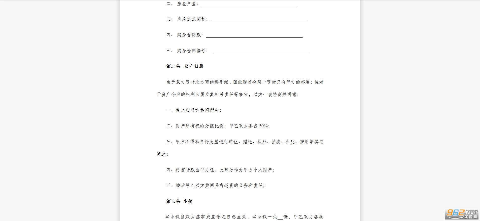 婚前甲乙双方同意以甲方单方名义在按揭住房一套;房屋的详情况如下: