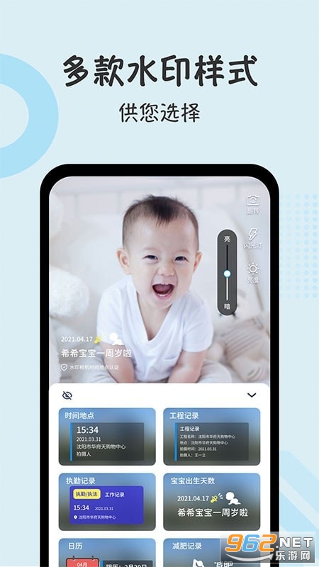 让你拍照的时候轻松添加想要的水印,不管是数字汉字还是图案都能轻松添加上去,操作也很简单,直接在设置中轻松设置添加,拍照按下快门键立马就能生成水印。