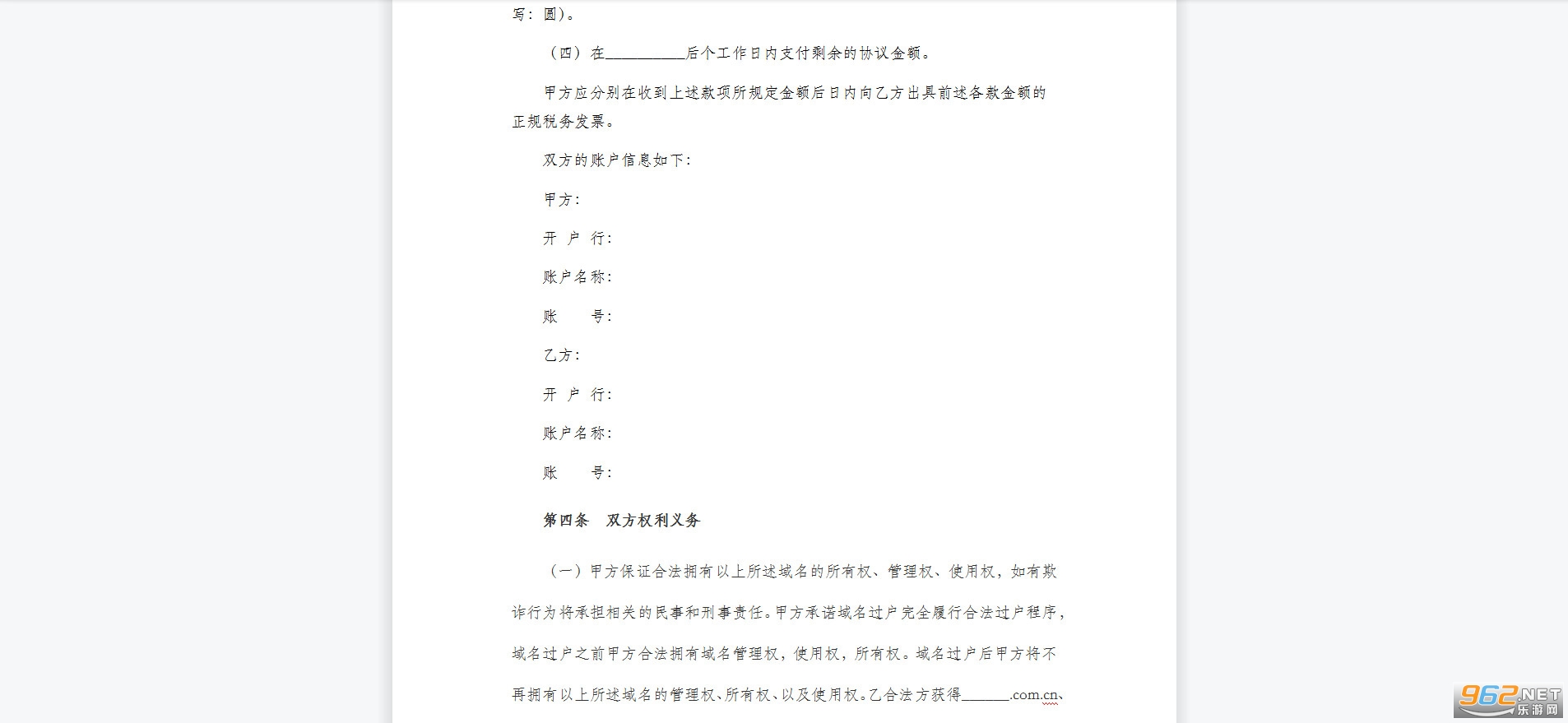 3.乙方按甲方要求填写相关资料,加盖乙方企业公章,乙方域名所有人签字。