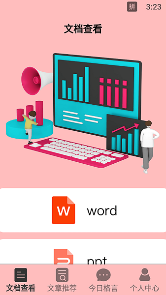 2、在文档查看功能,选择Word图标。