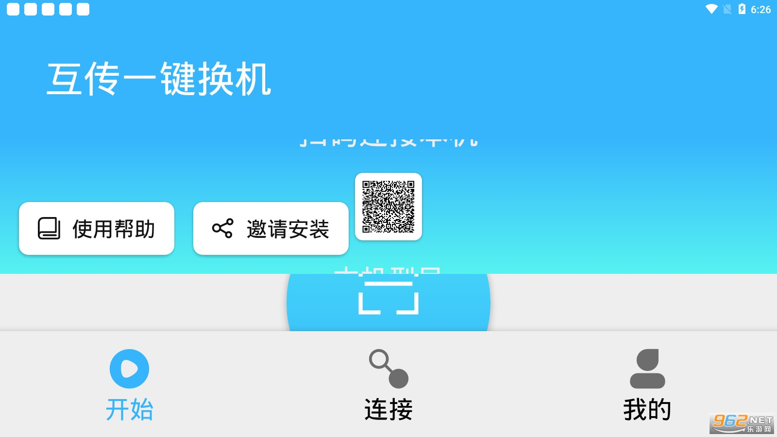 第3步:用其中一部手机「互传一键换机」的首页扫一扫,扫描另一部手机上「手机互传一键换机」的首页二维码,实现设备连接;