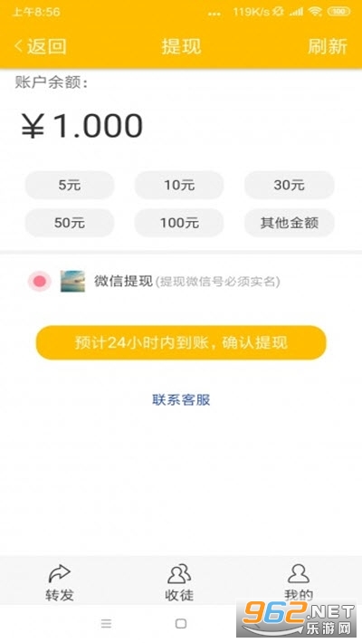 2、在叶猴资讯上赚钱的奖励满10元可提现,申请提现24小时到账。