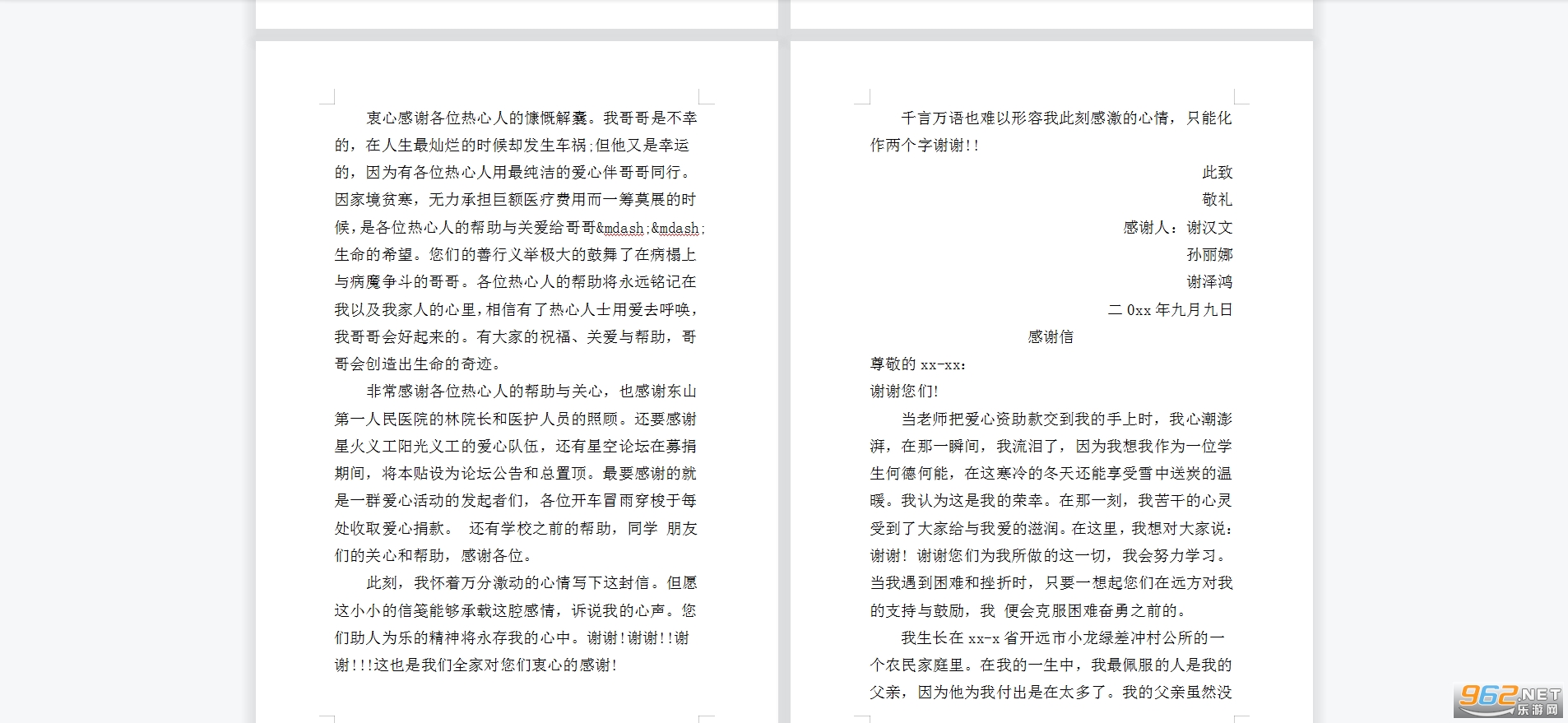 二 信中要洋溢着感激之情。在叙述事实的过程中,除了要突出对方的好思想和表示谢意外,行文要始终饱含着感情。这感情要真挚、热烈,使所有看到信的人都受到感染。