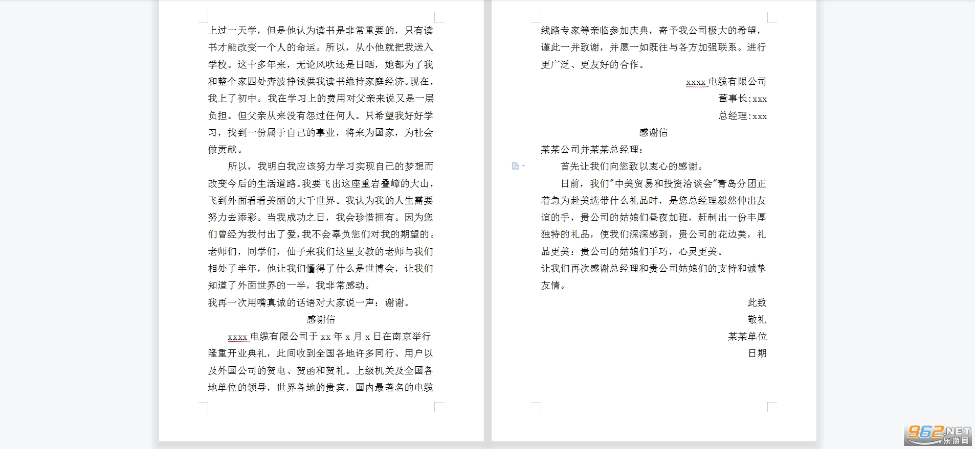 感谢信模板