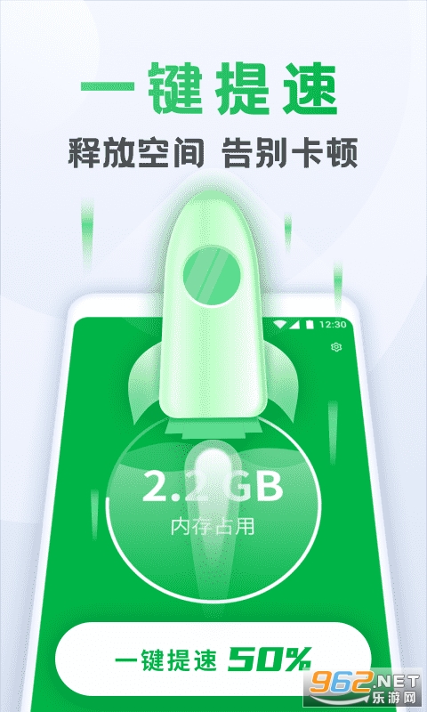 1、可以一键加速手机运行速度,让你游戏不卡顿;