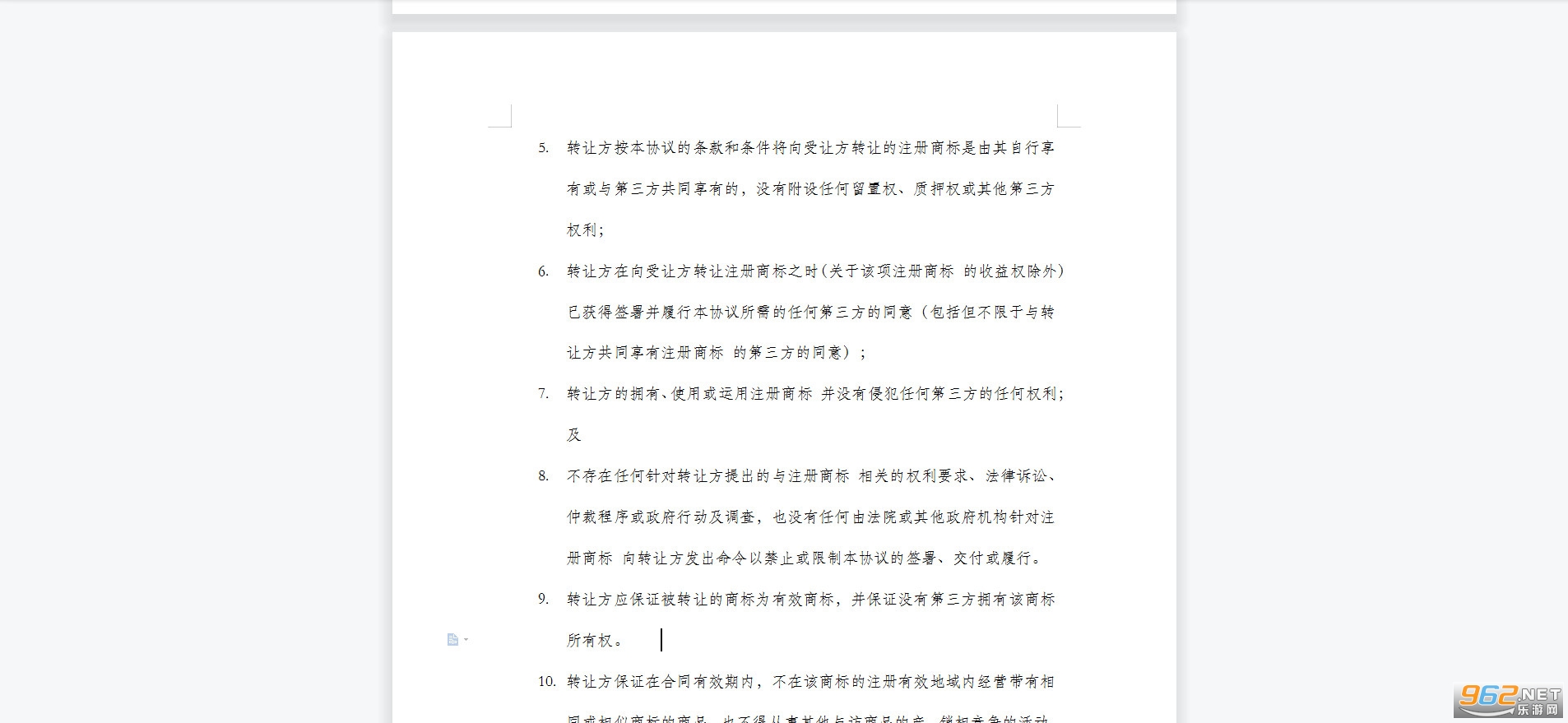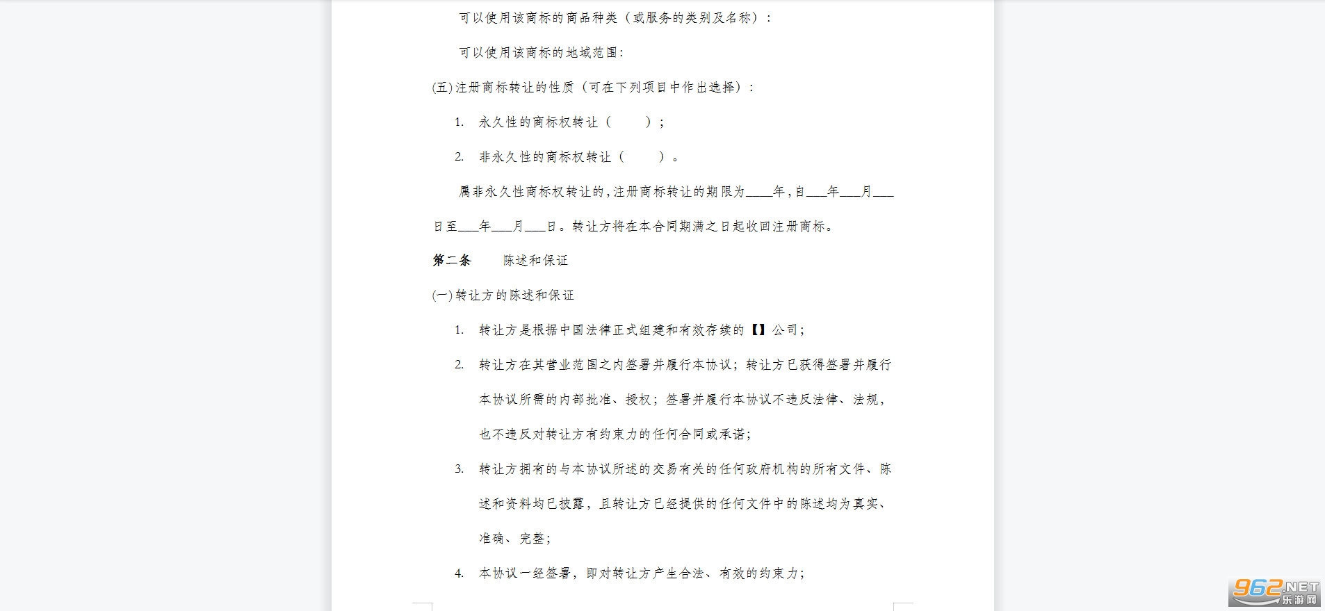 9.转让方应保证被转让的商标为有效商标,并保证没有第三方拥有该商标所有权。