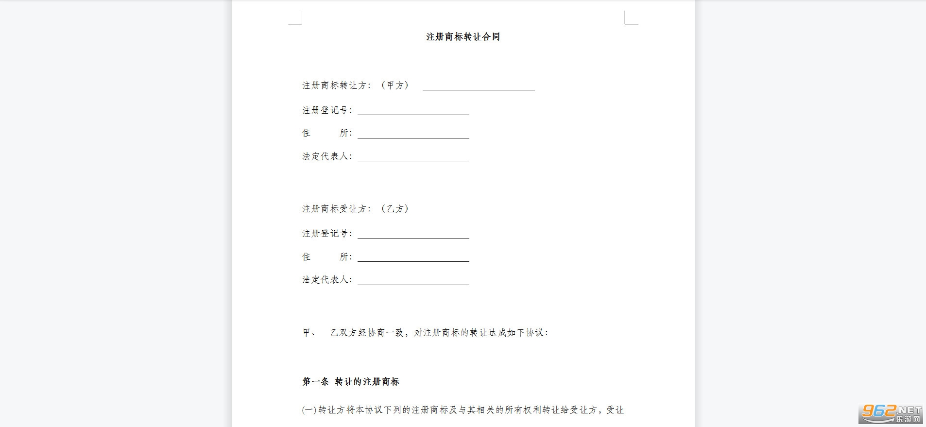 《注册商标转让合同》商标是企业产品的标志,一个好的商标能够让公司的发展变得更好。但是许多时候你需要从一些专业人士手中来购买各种各样的商标进行使用,这个时候就需要签订转让合同,获取已经注册商标的使用权。