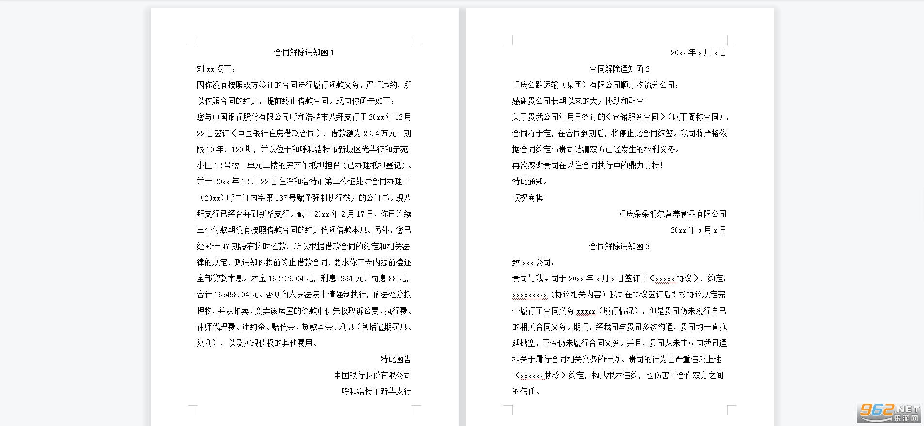 1、贵我两司于20xx年x月x日签订的《xxxxx协议》于贵司收到本通知函之日起终止;