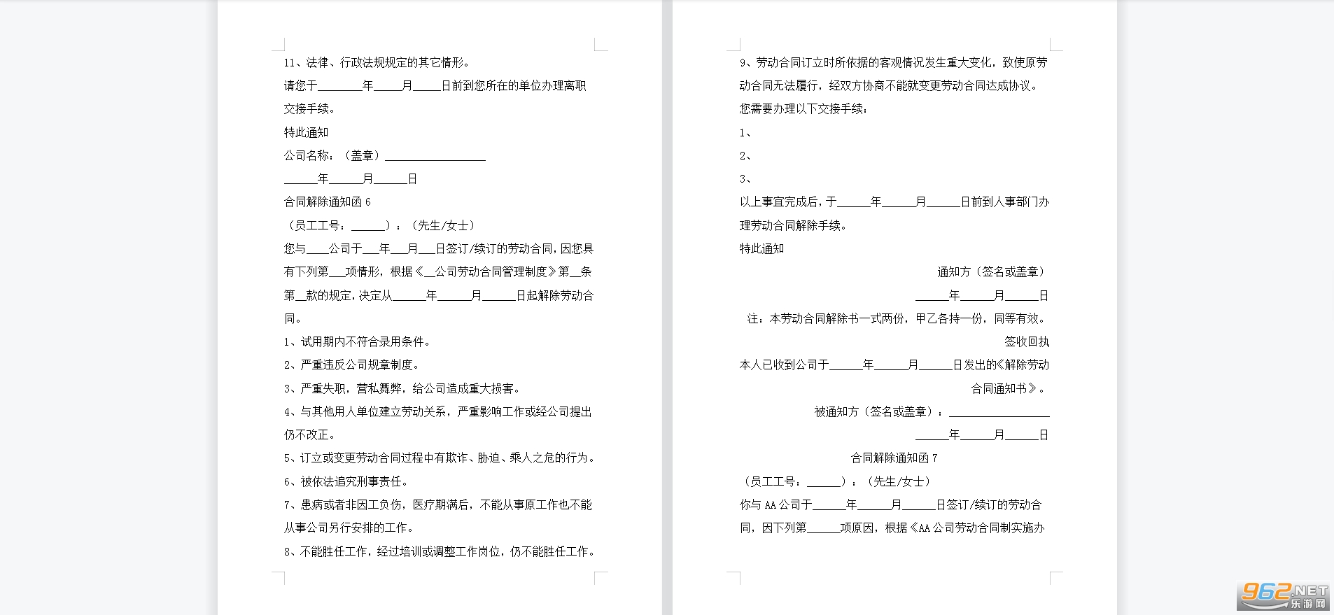 我们双方于________年_____月_____日签订的劳动合同将于________年_____月_____日期限届满(终止条件已出现),单位(本人)决定不再续订劳动合同,现根据《劳动法》第_____条的规定,决定与你(单位)终止劳动合同,请你(单位)于________年_____月_____日前到__________________部门(给予)办理终止劳动合同手续。