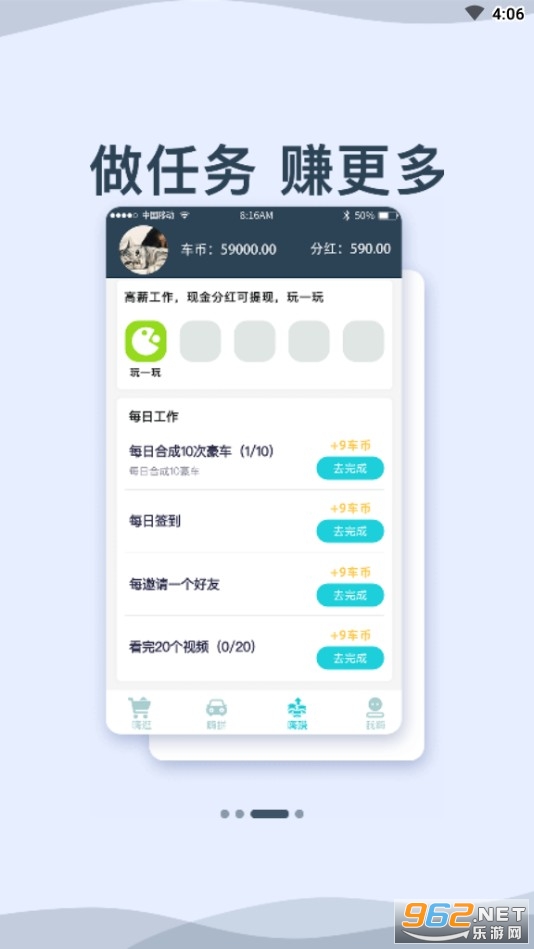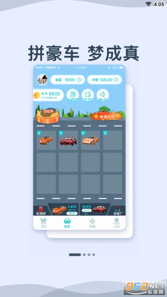 一起拼豪车软件是一款可以赚钱的手机应用,这里采用了丰富的奖励模式,在平台购物可以返现金和车币,玩家不断合成赛车赚取更多车币,又能解锁新的分红车,赚取平台的广告分红,超多等你来享。还可以邀请小伙伴一起来玩,喜欢的小伙伴快来试试吧!