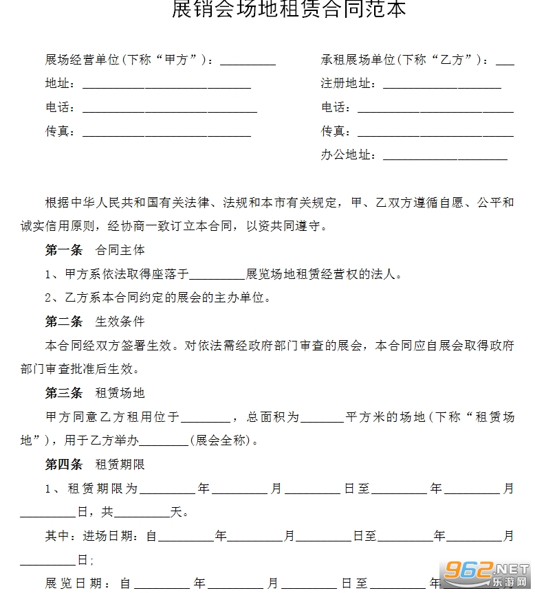 《展销会场地租赁合同范本》是一款非常不错的展销会场地租赁的免费版的合同,合同内容还是很详细的,下载直接使用,wprd文档也能直接打印,比较的详细不需要的可以自行的修改,感兴趣的亲们赶紧下载吧。