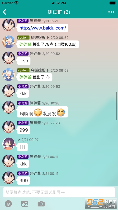 专门为喜欢二次元的朋友打造的一款全新的聊天工具,功能和儿时我们使用过的聊天室的功能差不多,为玩家搭建了一个全新的社交平台,让你在这里和其他人互动聊天,发表自己的观点,加入你感兴趣的话题进行讨论!