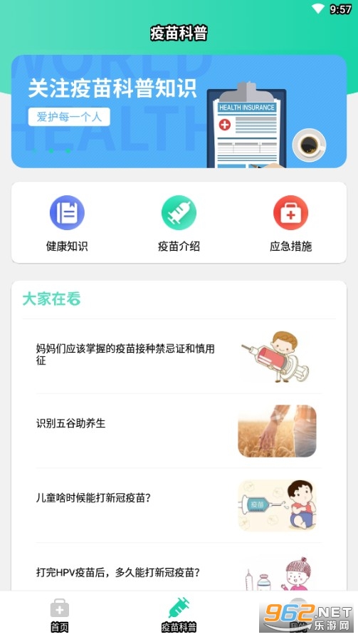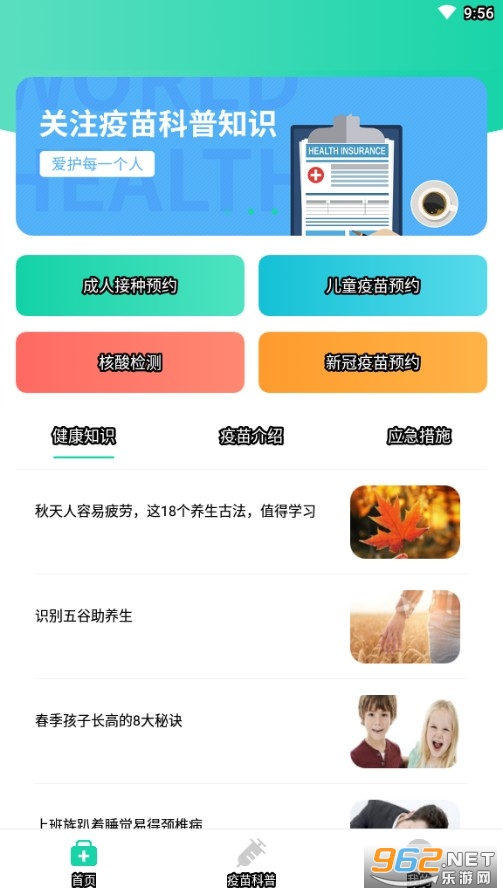 了解更多疫苗的相关知识,查看打完疫苗之后需要注意的事项,另外用户们也能在这里学到很多健康方面的知识,这款生活健康软件能带给我们很多的便利,大家如有需要的话直接点击下载吧。
