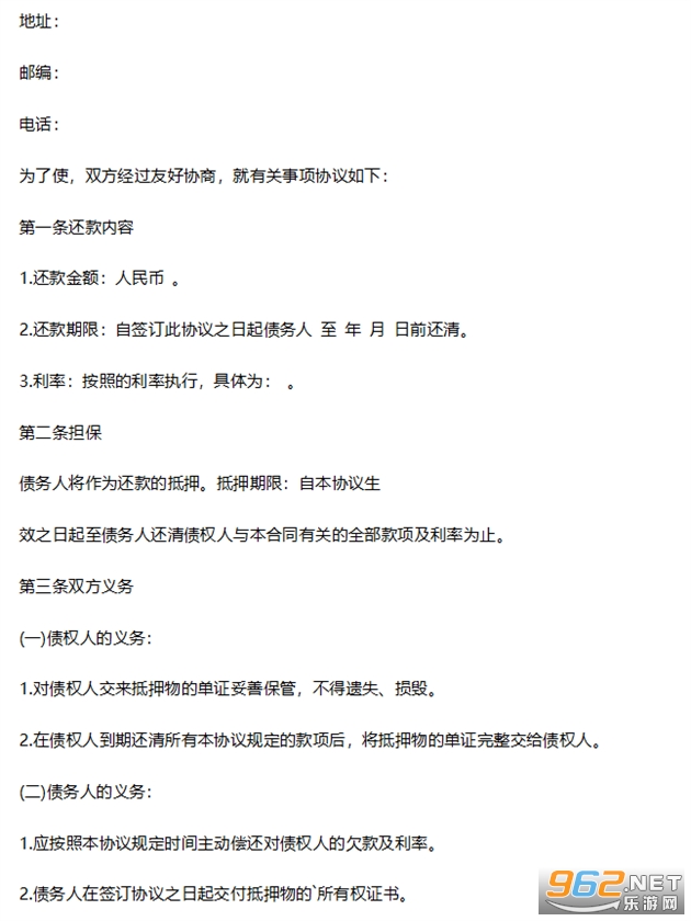 二、还款协议必须由债权人和债务人亲自签章,一方为单位的,需单位法定代表人签章并加盖单位公章方为有效。
