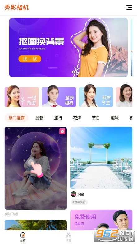 《秀影图片编辑》是一款多功能图片编辑软件,能轻松满足用户们的编辑需求,各种各样的模板随意选择使用,还有一键抠图、一键换背景、图片修复、模板背景添加、童颜相机等多种功能,里面所有的功能都是免费使用的,大家如有需要的话可以直接点击下载。