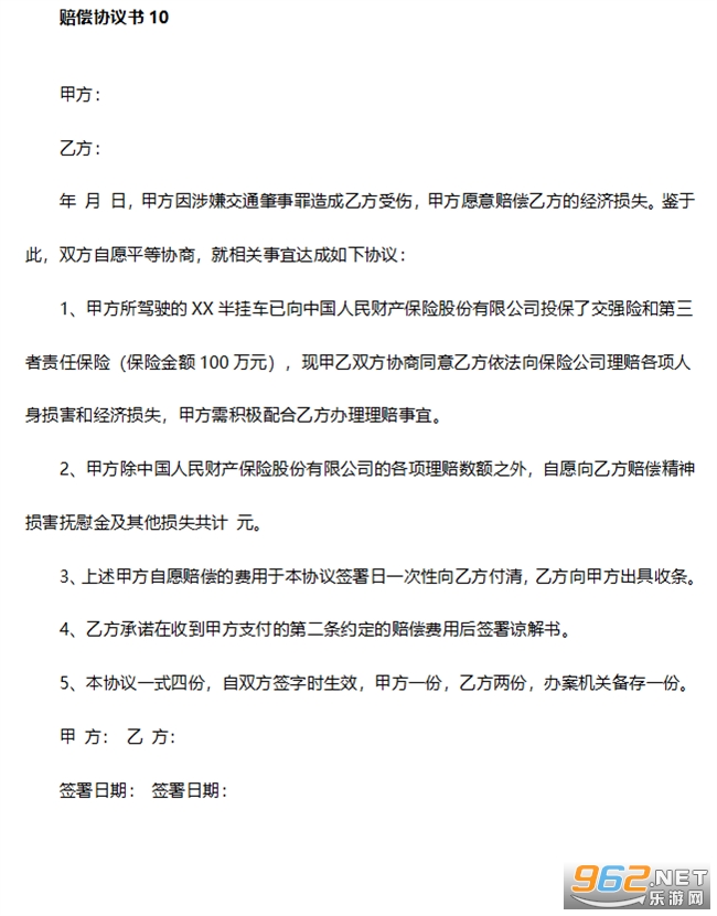 赔偿协议书怎么写有法律效益?赔偿协议书怎么写模板。《赔偿协议书》中为大家带来10份不同事故情况下的赔偿协议书,用户可以根据自己的情况来进行修改删减,直接下载赔偿协议书范本压缩包进行解压即可。