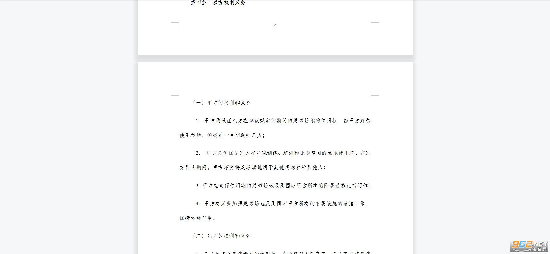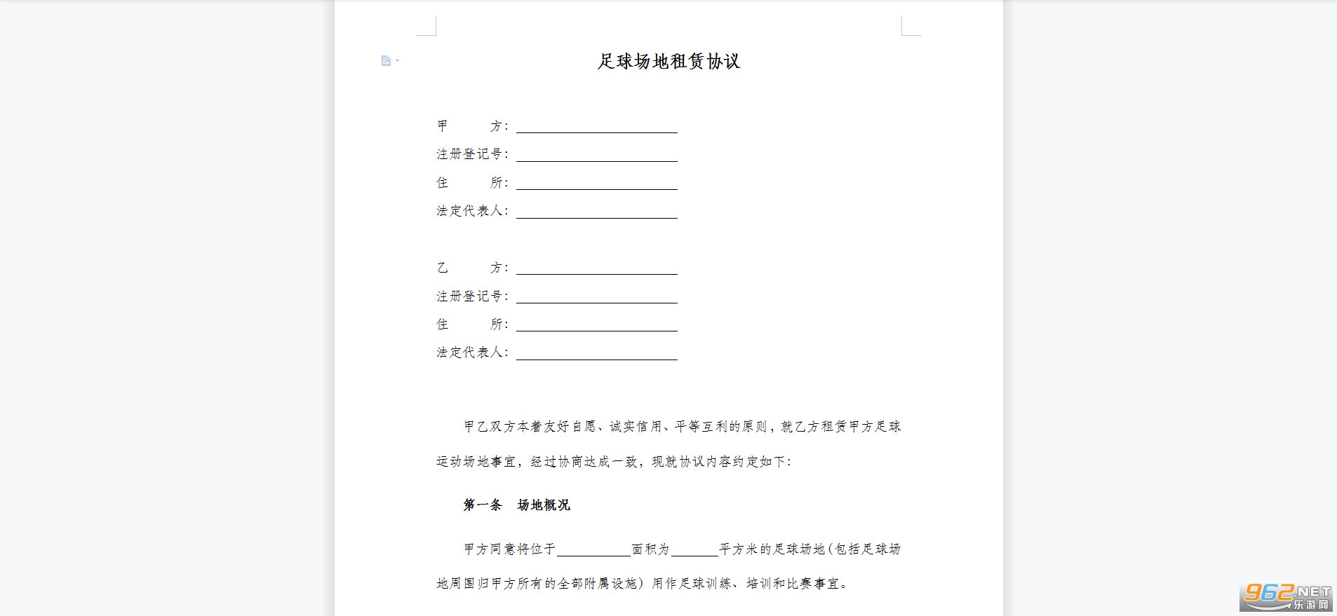 甲乙双方本着友好自愿、诚实信用、平等互利的原则,就乙方租赁甲方足球运动场地事宜,经过协商达成一致,现就协议内容约定如下: