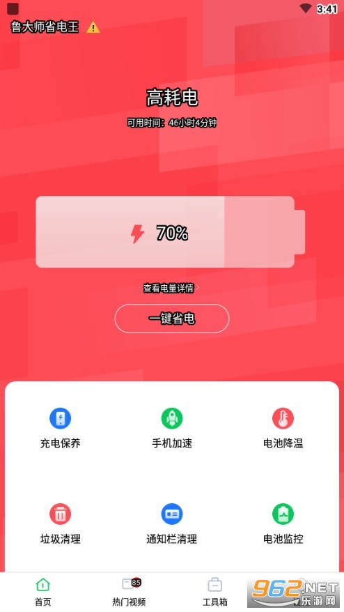 鲁大师省电王是一款非常专业的电池管理服务软件,软件功能非常全面,这里提供一键省电、锁屏休眠、电池信息查询、三段式充电、充电提醒等多种功能,能够让你实时了解电池状态,操作非常便捷,有需要的朋友快来下载吧!