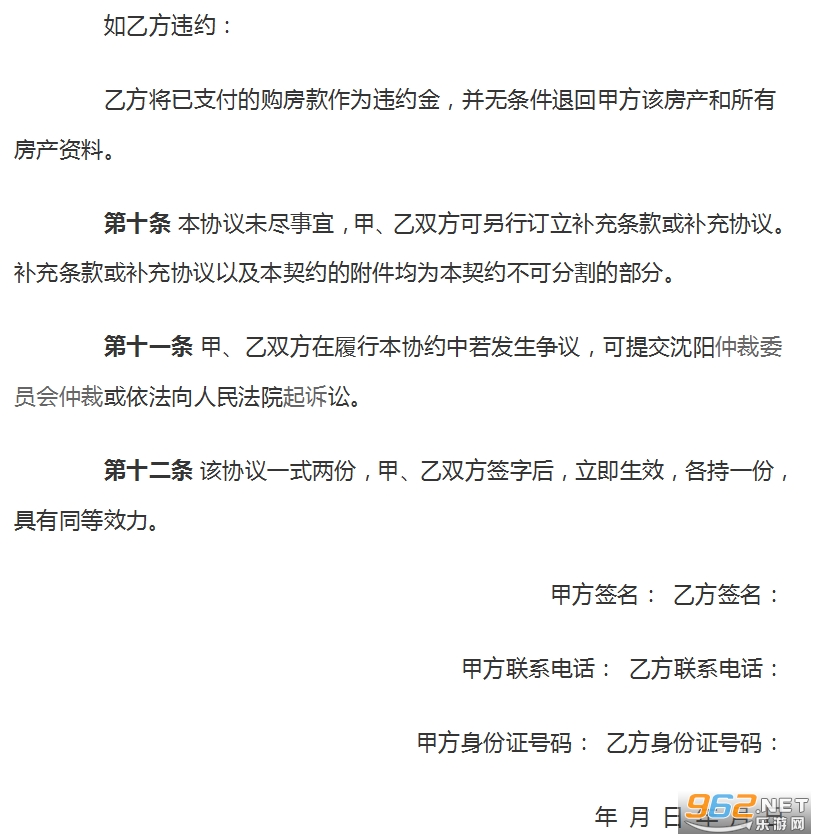 3、在违约赔偿一栏,要求违约一方赔偿房屋总价的10%,这样卖方就不好随便返价了。