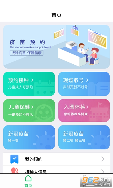 4、进入首页,点击“新冠疫苗预约”,进入新冠疫苗预约界面。