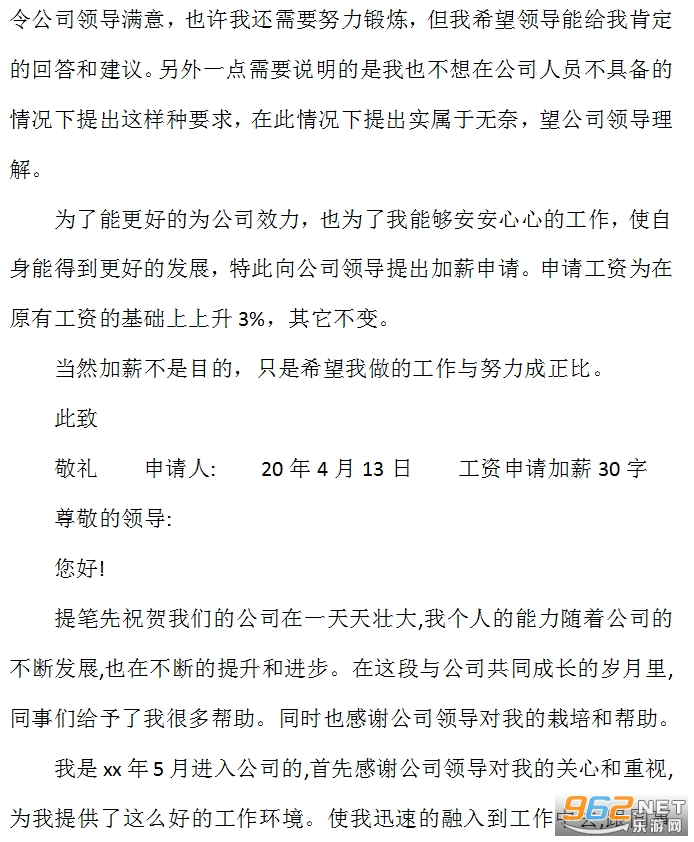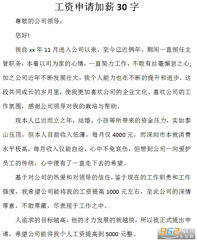 工资申请加薪30字