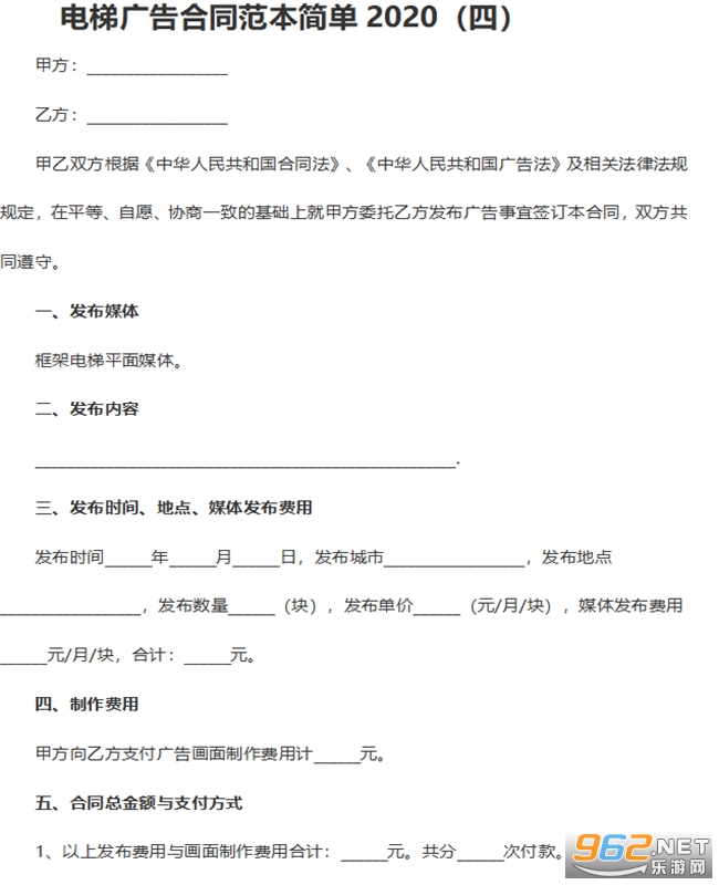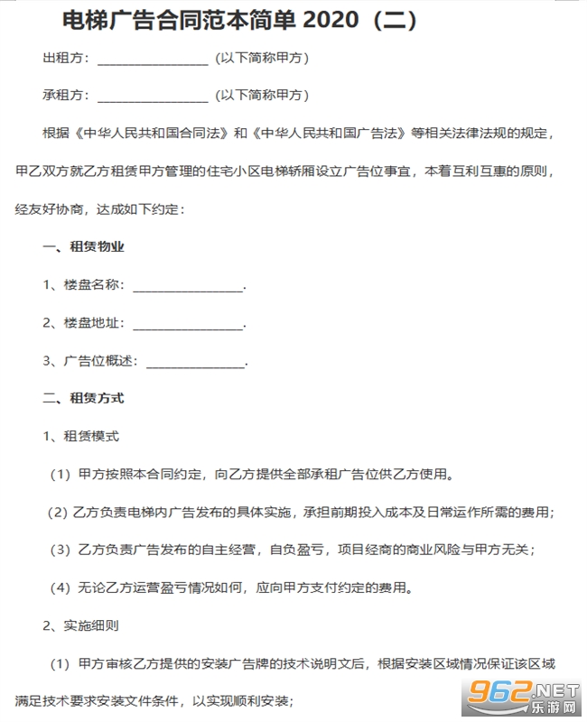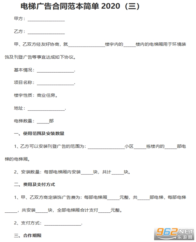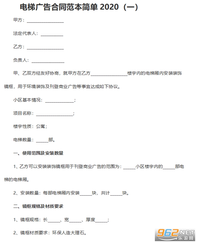 电梯广告合同电子档文档