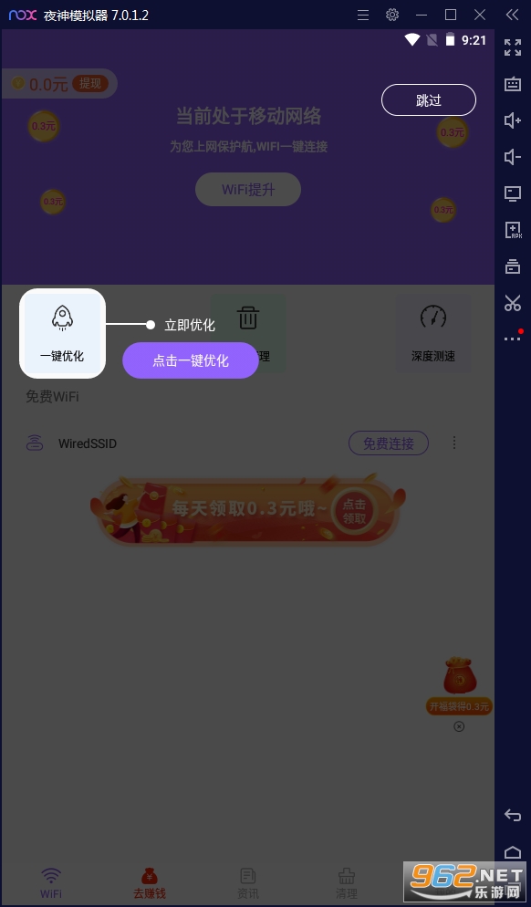 1、WiFi提速,帮助提升WiFi速度,在用网的时候,进行流畅上网;