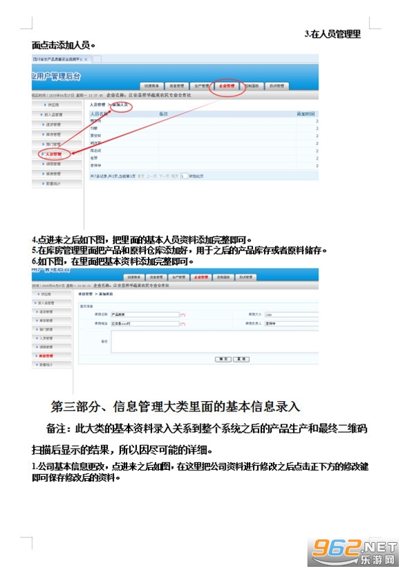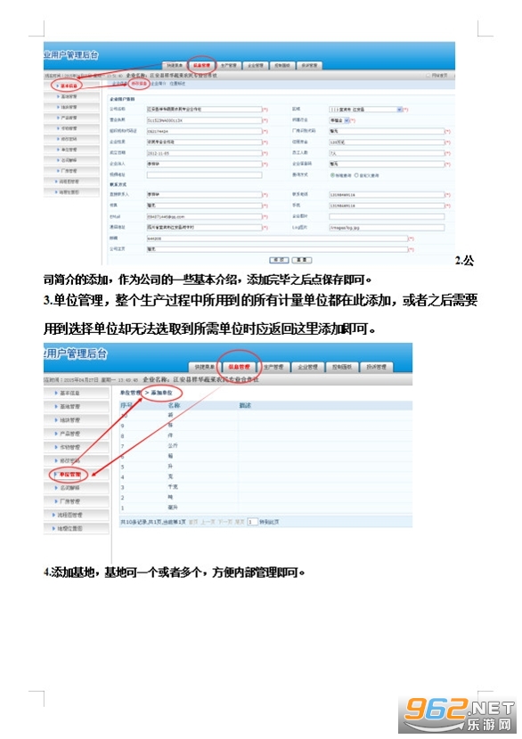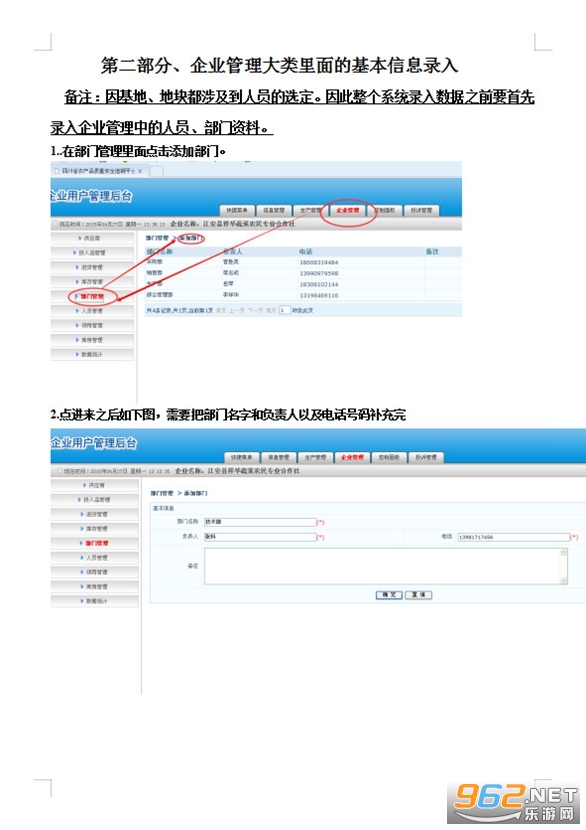 备注:因基地、地块都涉及到人员的选定。因此整个系统录入数据之前要首先录入企业管理中的人员、部门资料。